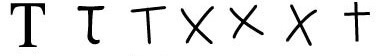 The Greeks borrowed this font automatically, and called it “tau.” This font passed through Greek, Etruscan, and Rome typestyles without being changed up to the modern era.