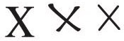 Since the X is not a wide letter, it should be drawn only about 1/2 to 3/4 of its height. If it is drawn widely it ungainly and subsequently hampers he smooth flow of reading. While Xs are constructed of only two diagonal strokes there is still a wide variety of designs. Some characters look like crosse Ls and others can look like flipped Cs.